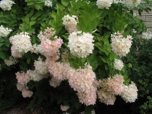 Цветки белые, а потом приобретают розовый оттенок. В основном цветки душистые, стерильные, собранные в пышные крупные метельчатые соцветия. Выносит полутень, хоть и является